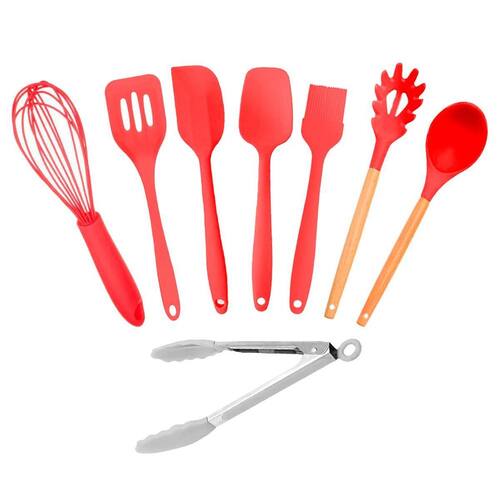 Kit 8 Utensílios Culinários De Silicone Para Cozinha Vermelho- Característica do Produto - Feitos em Silicone, o kit de utensílios culinarios auxiliam no seu dia a dia proporcionando maior praticidade no momento de preparar suas receitas mais saborosas e criativas. Resistente e elegante são os produtos perfeitos para sua cozinha , que irão garantir ainda mais praticidade e segurança no manuseio dos seus pratos culinários. Além disso, por contar com seu cabo de madeira de alta qualidade , os utensilios deste kit ajudam na pegada , fazendo com que seja muito mais seguro e eficiente o seu uso no dia a dia .