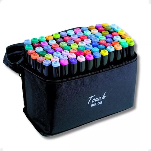 Este conjunto de canetas é ideal para quem busca um produto de alta qualidade, perfeito para arquitetura, desenho de moda, mangá, coloração de mandalas ou para quem está iniciando no mundo da arte. O kit contém 80 marcadores de ponta dupla, totalizando 96 pontas. Os marcadores são à base de álcool e não têm cheiro, sendo adequados para crianças.