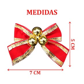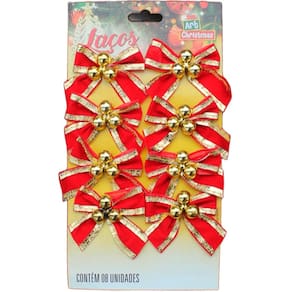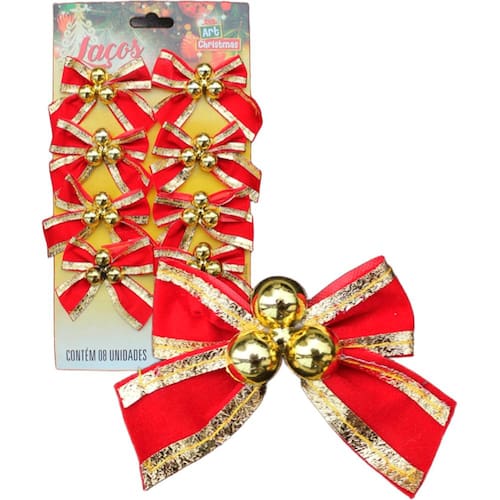 10 Conjunto Com 8 Laços Decorativo Vermelho E Dourado 7cm;