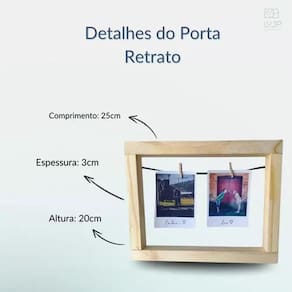 Medindo 20cm x 25cm x 3cm, este encantador item suporta fotos de 9x7cm vertical ou 14x9cm horizontal . Feito de madeira pinus, uma opção ecológica, este produto é mais do que uma peça decorativa.