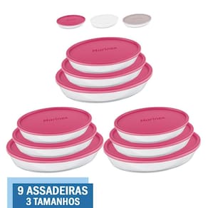 9 Assadeiras 3 Tamanhos 1,6 Litros, 2,4 Litros, 3,2 Litros Oval com Tampa Marinex Nadir Figueiredo