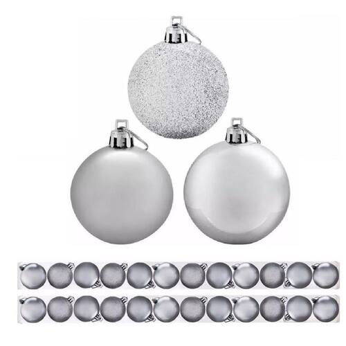 Kit 9 Bolas De Natal Mista Prata 6cm Pendente Árvore