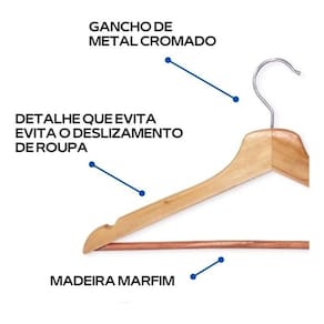 contém: - 01 kit com 9 cabides de madeira com verniz