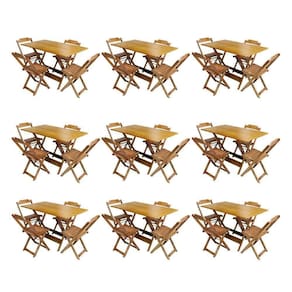Kit 9 Conjuntos De Mesa Dobravel Com 4 Cadeiras De Madeira 120x70 Para Restaurante E Bar - Mel