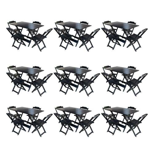 Kit 9 Conjuntos De Mesa Dobravel Com 4 Cadeiras De Madeira 120x70 Para Restaurante E Bar - Preto
