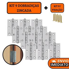 Kit 9 dobradiças zincada para porta de madeira 7,6cm + parafusos para fixação