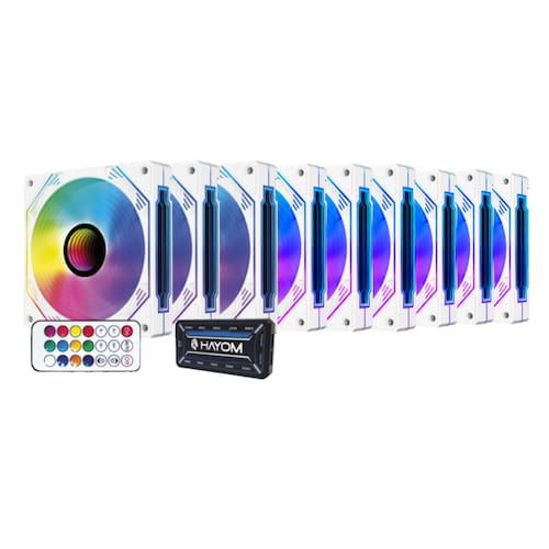 O Kit 9 Fan Cooler Hayom RGB 120mm com Controladora - Modelo FC1309 oferece uma solução eficiente e estilosa para o resfriamento de gabinetes de PCs. Com um design elegante em branco, esse kit é ideal para quem deseja otimizar o fluxo de ar dentro do gabinete enquanto adiciona um toque de iluminação RGB personalizável, tornando-o uma ótima escolha para setups gamers ou profissionais que exigem desempenho e estilo.