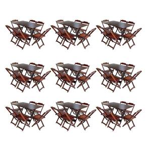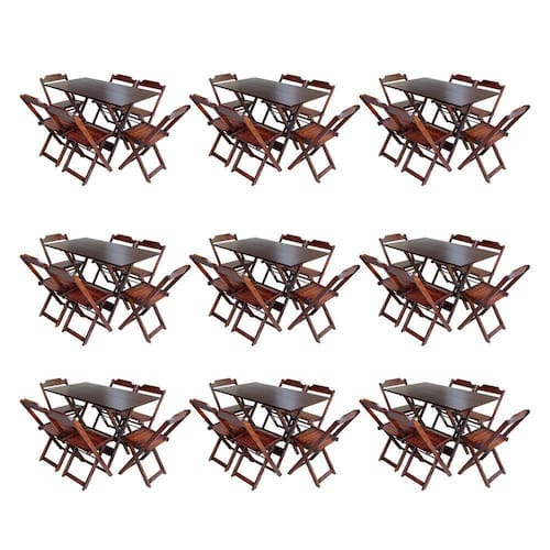 Kit 9 Jogos De Mesa Dobravel Com 6 Cadeiras De Madeira 120x70 Para Restaurante E Bar - Imbuia