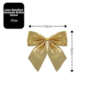 Produzidos em material leve e resistente (poliéster), possuem acabamento em tonalidade dourada com brilho suave, que proporciona um visual sofisticado e discreto. O laço vem pronto para aplicar, economizando tempo e facilitando a montagem da sua decoração de fim de ano.