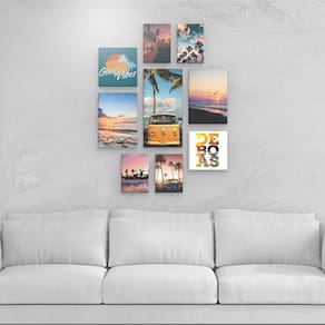 Kit 9 Quadros Decorativos Praia Kombi Good Vibes