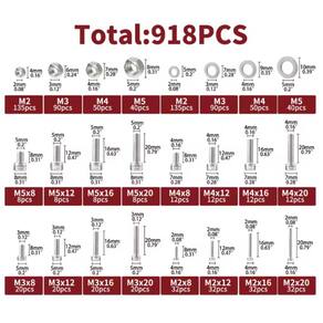 Kit 918 Porcas Parafusos Sextavados Arruela Inox M2 M3 M4 M5