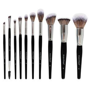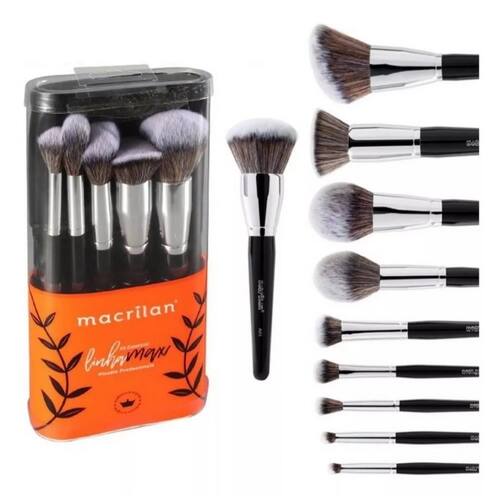 Kit Profissional Maxx A 100 da Macrilan feito com 10 pincéis profissionais para aplicação completa de maquiagem, tanto com produtos líquido, cremosos ou em pó. Os pincéis são fabricados com cerdas super macias e duplamente polidas. Os formatos especiais de cada pincel proporcionam um resultado profissional e impecável na maquiagem.