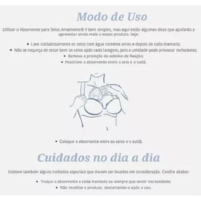 Produzido em formato anatômico, que se acomoda confortavelmente no seio, vem com fita adesiva para fixação discreta no sutiã, de modo que não marque a roupa.