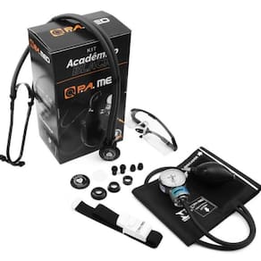 Kit Acadêmico Pa Med Black Total Ap. Pressão Art. Adulto Nylon Fecho de Contato - P.A. MED Aparelho arterial de alta precisão e sensibilidade com sistema de fecho de contato que proporciona maior praticidade e facilidade no manuseio, obtendo um melhor diagnóstico seguro e confiável, testado rigorosamente pelo controle de qualidade P.A. MED e aferido pelo INMETRO, 100% com selo de verificação inicial, acompanha bolsa exclusiva em cristal transparente com detalhes na cor de cada kit. COMPOSIÇÃO: Braçadeira: confeccionada em tecido Nylon, flexível e antialérgico utilizando fecho de contato. Manguito: fabricado em PVC, duas saídas, sem emendas, de alta durabilidade. Manômetro: aneróide com escala de 0 a 300 mmHg, divisão de escala 2 mmHg, caixa de metal altamente resistente com presilha de metal, contendo o nº da portaria do INMETRO no visor e o respectivo selo de vistoria no produto em forma de lacre e certificado individual que acompanha o produto. Pera insufladora: fabricado em PVC, com sistema de fluxo de ar em metal, com de aço inox de alta durabilidade. Válvula: metal altamente resistente com regulagem de saída de ar sensível. Estetoscópio Rappaport - P.A. MED O estetoscópio Rappaport é indicado para a ausculta cardíaca e pulmonar. Completo com tubo duplo para ausculta mais precisa, possui cinco tipos diferentes de auscultadores, para detectar sons dos batimentos cardíacos, pulmonar e corporal de baixa e média frequência com maior distinção. COMPOSIÇÃO: Auscultador/campânula BLACK TOTAL: Metal de alta durabilidade pintado na cor preto, realiza auscultação precisa de sons de baixa e alta frequência Cardio Pulmonar . Anel: latão nobre cromado com rosca para melhor travamento da membrana/diafragma. Ângulo BLACK TOTAL: Biauricular em de latão na cor preto, resistente de alta durabilidade com ajuste automático através de mola de aço anodizado na cor preto. Olivas: formato anatômico em PVC macio e atóxico. Tubo: dois tubos condutores para melhor condução dos sons, em PVC flexível e atóxico para ausculta mais precisa. Diafragma/membrana: alta sensibilidade, sendo uma membrana maior no tamanho adulto, uma membrana menor para uso pediátrico e ambos na cor preto. Acessórios que Acompanha: Peças sobressalentes que possibilita a formação de diversas configurações de seu modelo rappaport do estetoscópio, sendo os mais usuais para o tamanho adulto, Infantil/Pediátrico/Neo-Natal e tendo sua ausculta cardíaca e pulmonar. 01 membrana adulto, 01 membrana Infantil, 02 par de olivas macias, 02 aneis para ausculta pulmonar adulto e infantil Acompanha: placa para identificação do proprietário. KIT COMPOSTO POR: 01 Aparelho P.A. MED nylon com fecho de contato . 01 Estetoscópio Rappaport LINHA BLACK com acessórios. 01 Bolsa prática e ergonômica Transparente para transporte. 01 Garrote. 01 Óculos de proteção. Especificações Técnicas Aparelho : Tamanho: Adulto Medida da Braçadeira: 52 x 14 cm Abrangência Circunferência do Braço: 18 a 36 cm Tamanho Manguito: 12 x 22 cm Fabricante: P.A. MED : 2 anos. Exceto braçadeira Aprovação: Portaria INMETRO/DIMEL: Nº 322 de 11/09/09. Registro Ministério da Saúde / ANVISA: 80540449001 Estetoscópio: Tamanho: Adulto Diâmetro Auscultador Cardiológico/Pulmonar: 4,6 cm / 3,0 cm Tamanho Tubo: 65 cm Peso: 0,097 kg Acompanha Manual de Instruções: Sim Fabricante: P.A. MED : 2 anos contra defeito de fabricação Registro Ministério da Saúde / ANVISA: 80540449002. Homologação Anvisa: 81034250002