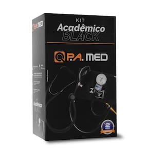 Kit Acadêmico Pa Med Cinza Total Aparelho arterial de alta precisão e sensibilidade com sistema de fecho de contato que proporciona maior praticidade e facilidade no manuseio, obtendo um melhor diagnóstico seguro e confiável, testado rigorosamente pelo controle de qualidade P.A. MED e aferido pelo INMETRO, 100% com selo de verificação inicial, acompanha bolsa exclusiva em cristal transparente com detalhes na cor de cada kit. COMPOSIÇÃO: Braçadeira: confeccionada em tecido Nylon, flexível e antialérgico utilizando fecho de contato. Manguito: fabricado em PVC, duas saídas, sem emendas, de alta durabilidade. Manômetro: aneróide com escala de 0 a 300 mmHg, divisão de escala 2 mmHg, caixa de metal altamente resistente com presilha de metal, contendo o nº da portaria do INMETRO no visor e o respectivo selo de vistoria no produto em forma de lacre e certificado individual que acompanha o produto. Pera insufladora: fabricado em PVC, com sistema de fluxo de ar em metal, com de aço inox de alta durabilidade. Válvula: metal altamente resistente com regulagem de saída de ar sensível. Estetoscópio Rappaport - P.A. MED O estetoscópio Rappaport é indicado para a ausculta cardíaca e pulmonar. Completo com tubo duplo para ausculta mais precisa, possui cinco tipos diferentes de auscultadores, para detectar sons dos batimentos cardíacos, pulmonar e corporal de baixa e média frequência com maior distinção. COMPOSIÇÃO: Auscultador/campânula BLACK TOTAL: Metal de alta durabilidade pintado na cor preto, realiza auscultação precisa de sons de baixa e alta frequência Cardio Pulmonar . Anel: latão nobre cromado com rosca para melhor travamento da membrana/diafragma. Ângulo BLACK TOTAL: Biauricular em de latão na cor preto, resistente de alta durabilidade com ajuste automático através de mola de aço anodizado na cor preto. Olivas: formato anatômico em PVC macio e atóxico. Tubo: dois tubos condutores para melhor condução dos sons, em PVC flexível e atóxico para ausculta mais precisa. Diafragma/membrana: alta sensibilidade, sendo uma membrana maior no tamanho adulto, uma membrana menor para uso pediátrico e ambos na cor preto. Acessórios que Acompanha: Peças sobressalentes que possibilita a formação de diversas configurações de seu modelo rappaport do estetoscópio, sendo os mais usuais para o tamanho adulto, Infantil/Pediátrico/Neo-Natal e tendo sua ausculta cardíaca e pulmonar. 01 membrana adulto, 01 membrana Infantil, 02 par de olivas macias, 02 aneis para ausculta pulmonar adulto e infantil Acompanha: placa para identificação do proprietário. KIT COMPOSTO POR: 01 Aparelho P.A. MED nylon com fecho de contato . 01 Estetoscópio Rappaport LINHA BLACK com acessórios. 01 Bolsa prática e ergonômica Transparente para transporte. 01 Garrote. 01 Óculos de proteção. Especificações Técnicas Aparelho : Tamanho: Adulto Medida da Braçadeira: 52 x 14 cm Abrangência Circunferência do Braço: 18 a 36 cm Tamanho Manguito: 12 x 22 cm Fabricante: P.A. MED : 2 anos. Exceto braçadeira Aprovação: Portaria INMETRO/DIMEL: Nº 322 de 11/09/09. Registro Ministério da Saúde / ANVISA: 80540449001 Estetoscópio: Tamanho: Adulto Diâmetro Auscultador Cardiológico/Pulmonar: 4,6 cm / 3,0 cm Tamanho Tubo: 65 cm Peso: 0,097 kg Acompanha Manual de Instruções: Sim Fabricante: P.A. MED : 2 anos contra defeito de fabricação Registro Ministério da Saúde / ANVISA: 80540449002.