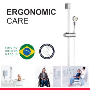 Essa Barra de acessibilidade para Chuveiro com hand shower personalizado, permite escolher o ângulo de saída de água e ajustar conforme a sua preferência.
