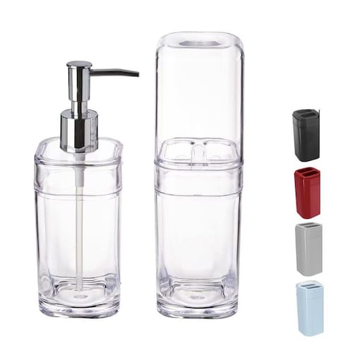 Material Poliestireno Linha Banho Splash Tipo de Produto Banho Composição 01 Porta Sabonete Líquido 01 Porta-escova com Tampa Splash Marca: Coza/Brinox