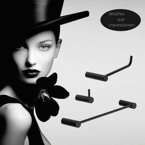 O kit de acessórios para banheiro da linha Orion possui um design versátil, são peças que se destacam com minimalismo. ;