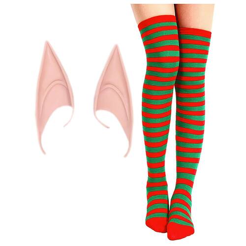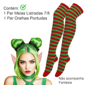 Contém: 1 par de meias listradas 7/8 + 1 Orelha Pontuda de Elfo.