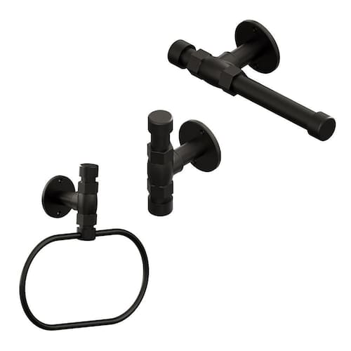 Kit acessórios de lavatório para banheiro industrial rustico preto fosco luxo Na embalagem contém: 01 cabide 01 porta toalha argola 01 papeleira O estilo industrial é indicado para quem busca uma decoração mais moderna e rústica. Tem como inspiração as estruturas dos galpões, com texturas combinadas de tijolos, tubulação aparente, madeira, cano, metal e concreto. A cor dos nossos acessórios são resultado de um processo eletroquímico de elevada tecnologia e qualidade. O acessório para banheiro é uma ótima opção para quem procura um produto de extrema qualidade. Além disso, seu designer moderno o torna um lindo objeto decorativo. É fabricado com materiais de alta qualidade. Os acessórios da shophidraulica proporcionam um visual mais elegante ao seu ambiente, a cor que faltava. - material 100% metal - acessórios para instalação incluso - fácil instalação - 5 anos de - acabamento moderno Marca: Shophidraulica Ean: 7894248800859