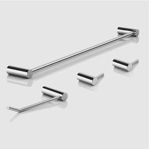 O kit de acessórios para banheiro da linha Orion possui um design versátil, são peças que se destacam com minimalismo. ;