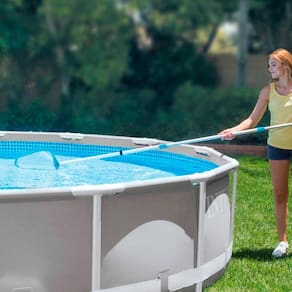 A combinação de três acessórios que vão manter a piscina limpa e livre de folhas, insectos, pó e outros detritos. Este kit de limpeza de piscina é compatível com o cabo telescópico de alumínio INTEX de 26,2 mm de diâmetro. Além disso, a cabeça do aspirador também pode ser conectada à mangueira de jardim.