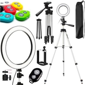 Kit Acessório Youtuber Tripé Profissional Celular Iluminador Kit acessórios youtuber tripé profissional suporte para celular + iluminador ring light led flash + controle bluetooth Kit youtuber com eletrônica Kit tripé profissional + ring light + controle bluetooth Kit profissional, completo,de qualidade e com eletrônica. São itens com uma bolsa para transporte do tripé todo em alumínio e com nível para melhor qualidade de seus vídeos e fotos. O kit contém: 1 tripé de até 1,30m de alcance para celular,câmera ou ring light. 1 iluminador ring light 16cm 1 controle bluetooth 1 bolsa para transporte do tripé 1 mini tripé para o ring light 1 adaptador de celular para usar no tripé Iluminador ring light de 16 centímetros 6,5 polegadas , desenvolvido para maquiadores, fotógrafos, cinegrafistas, youtubers e etc, que buscam uma ótima maneira de iluminar com perfeição. O encaixe do ring ligth é através de encaixe padrão de tripés de rosca. O mini tripé também serve para utilizar em outros equipamentos de até 1kg de peso, como projetores, celulares e etc. É recomendado e extremamente eficaz para a macro fotografia, fotografia médica, odontológica, científica, hobby e para a iluminação/fotografia de produções de maquiadores. A alimentação do iluminador é através de cabo usb não acompanha adaptador de tomada e não possui bateria interna recarregável , você pode utilizar um adaptador de tomada de celular para ligar ou conectar no usb do computador, ou outro equipamento que forneça 5v usb. O cabo usb deverá estar sempre ligado para funcionar. Controle remoto bluetooth celular É um produto que foi desenvolvido para facilitar a vida dos usuários de smartphones que adoram tirar aquela selfie sozinho ou com a galera. Com ele, você pode facilmente tirar fotos ou fazer vídeos sem precisar tocar no seu aparelho Atenção a cor do controle bluetooth é escolhida aleatoriamente, conforme a disponibilidade em Homologação Anatel: 070971811807 Marca: Não Informado