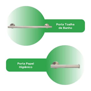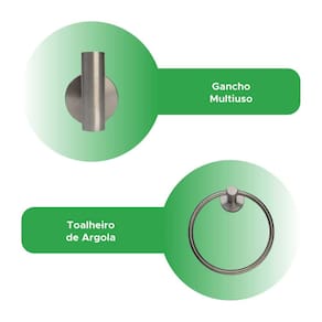 Itens inclusos: - 1x Porta toalha de banho - 1x Porta papel higiênico - 1x Gancho multiúso - 1x Toalheiro de argola - Kit Parafusos e buchas para instalação