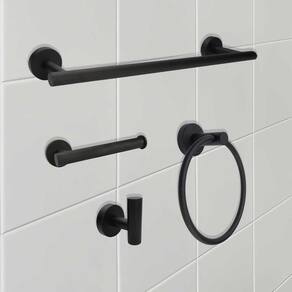Itens inclusos: - 1x Porta toalha de banho - 1x Porta papel higiênico - 1x Gancho multiúso - 1x Toalheiro de argola - Kit Parafusos e buchas para instalação