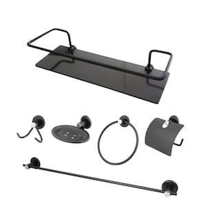 Kit acessórios 6 peças aço inox com porta shampoo reto preto Kit stander para banheiro + porta shampoo vidro temperado
