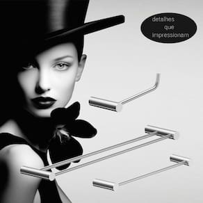 O kit de acessórios para banheiro da linha Orion possui um design versátil, são peças que se destacam com minimalismo. Além de decorar, organiza com funcionalidade o banheiro. Criado em metal nobre com uma qualidade que abrange áreas litorâneas e possui a de um acabamento muito resistente. Agora é só você adquirir estes lindos acessórios e fazer o seu projeto se tornar realidade com um banheiro prático para toda a sua família. Características Fabricado em metal alumínio. Disponível no Prata Alto Brilho, Escovado e Preto Fosco. Pode ser instalado em parede, azulejo e porcelanato. Benefícios Fixação prática e segura com parafusos e buchas inclusos. O produto não possui nenhum detalhe em plástico ABS . Fácil higienização, ideal para locais que exigem limpeza constante. Aproveitamento inteligente do espaço, ideal para ambientes compactos. Resistente à corrosão e luz solar. Itens ENVIADOS: 1 porta papel higiênico, 1 toalheiro rosto 30cm, 1 toalheiro duplo 60cm, kit de parafusos e manual instrução instalação. Instalação INTELIGENTE Ao 1º furo, use uma broca medida menor, após use a medida correta e finalize, vai ajudar na precisão da fixação da bucha principalmente em azulejos e porcelanato. Marca: Não Informado