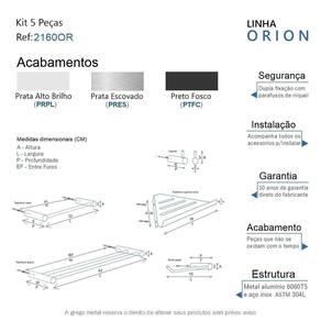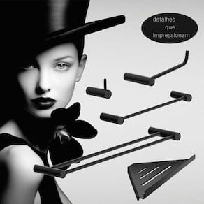 O kit de acessórios para banheiro da linha Orion possui um design versátil, são peças que se destacam com minimalismo. Além de decorar, organiza com funcionalidade o banheiro. Criado em metais nobres com uma qualidade que abrange áreas litorâneas e possui a de um acabamento muito resistente. Agora é só você adquirir estes lindos acessórios e fazer o seu projeto se tornar realidade com um banheiro prático para toda a sua família. Características Fabricado em metal alumínio e aço inox. Disponível no Prata Alto Brilho, Escovado e Preto Fosco. Pode ser instalado em parede, azulejo e porcelanato. Benefícios Fixação prática e segura com parafusos e buchas inclusos. O produto não possui nenhum detalhe em plástico ABS . Fácil higienização, ideal para locais que exigem limpeza constante. Aproveitamento inteligente do espaço, ideal para ambientes compactos. Resistente à corrosão e luz solar. Itens ENVIADOS: 1 cabide, 1 porta papel higiênico, 1 toalheiro rosto 30cm, 1 toalheiro duplo 60cm, 1 prateleira suporte canto 30cm, kit de parafusos e manual instrução instalação. Instalação INTELIGENTE Ao 1º furo, use uma broca medida menor, após use a medida correta e finalize, vai ajudar na precisão da fixação da bucha principalmente em azulejos e porcelanato. Marca: Não Informado