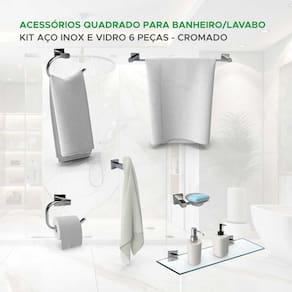 Kit Acessórios Banheiro Em Aço Inox E Vidro 6 Peças Cromado