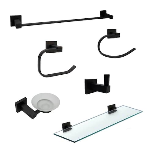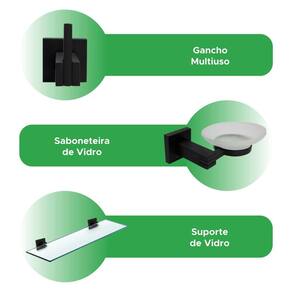 Kit Acessórios Banheiro Em Aço Inox E Vidro 6 Peças Preto