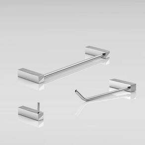 ITENS ENVIADOS: 1 cabide, 1 porta papel higiênico, 1 toalheiro rosto 30cm, kit de parafusos e manual instrução instalação.