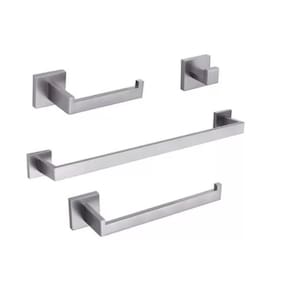 Cor: prata Material: aço inoxidável 304 - escovado Todas as peças tem a espessura de 1 cm. Tipo de fixação: dupla com parafusos Itens inclusos: papeleira, cabide, porta toalha de rosto e porta toalha de banho. Acompanha também: parafusos e buchas para instalação. Ean: 7794048393509
