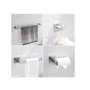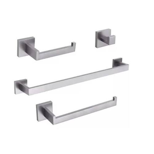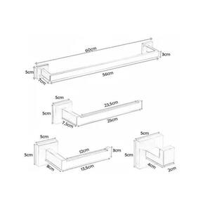 Cor: prata Material: aço inoxidável 304 - escovado Todas as peças tem a espessura de 1 cm. Tipo de fixação: dupla com parafusos Itens inclusos: papeleira, cabide, porta toalha de rosto e porta toalha de banho. Acompanha também: parafusos e buchas para instalação. Marca: Não Informado