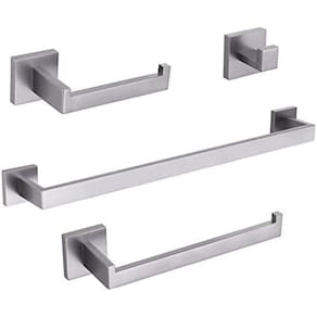 O kit de banheiro 4 peças é fabricado em metal e possui acabamento fosco. Com excelente qualidade e durabilidade ele proporcionará um ótimo acabamento ao seu banheiro e deixará seu uso ao banheiro mais prático. No kit possui 1 Porta Toalha de Banho, 1 Porta Toalha de Rosto, 1 papeleira e 1 gancho multi-uso. A instalação é muito prática e fácil utilizando-se parafusos de fixação sendo que eles já acompanham o produto.