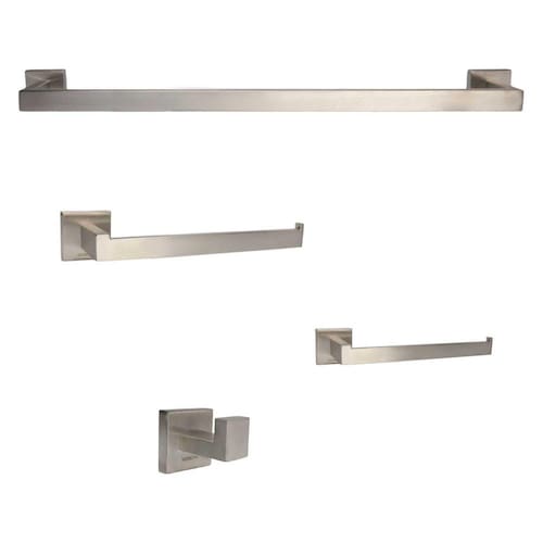 Kit Acessórios Banheiro Quadrado Aço Inox Escovado 4 Peças