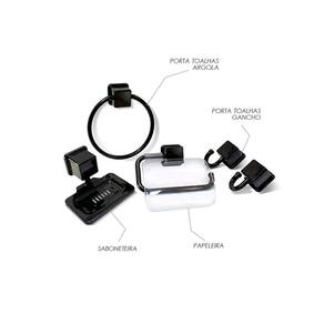 O kit acompanha: 1 Saboneteira, 1 Porta Toalhas Argola, 2 Porta Toalhas Gancho Simples 1 Papeleira