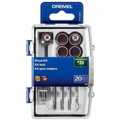 Kit Acessórios Madeira Para Micro Retifica 20 Peças DREMEL 733 - 26150733AB Perfeito Para Potencializar Sua Micro Retífica.Com acessórios Adequados Para Lixar, Esculpir, Furar e Gravar os Mais Bonitos Projetos em Madeira Os Acessórios São Compatíveis Com Todos os Modelos de Micro Retíficas Dremel. Código: 26150733ABMarca: Dremel Itens inclusos:01 Estojo de Armazenamento;01 Mandril Com Tubo de Lixa de 12,7mm de Grão Grosso;02 Tubos de Lixa de 12,7mm de Grão Grosso;02 Tubos de Lixa de 12,7mm de Grão Médio;10 Discos de Lixa de 19,1mm de Grão Grosso ;01 Escariador Para Esculpir de Ponta Arredondada de 2,4mm;01 Escariador Para Esculpir de Ponta Arredondada de 3,2mm;01 Escariador Para Esculpir de Ponta Quadrada de 3,2mm;01 Broca de Aço Rápido 3,2mm;01 Mandril Para Discos Haste Adaptadora .Imagens Meramente Ilustrativas.Todas as Informações Divulgadas São de Responsabilidade do Fabricante/Fornecedor