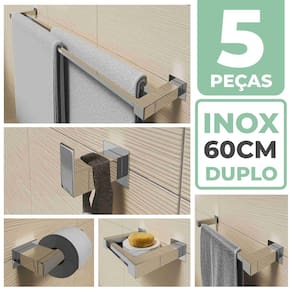 Contendo: 1 Cabide Linha Quadrada 1 Papeleira Linha Quadrada 1 Saboneteira Linha Quadrada 1 Toalheiro De Rosto 30cm Linha Quadrada 1 Toalheiro Duplo 60cm Linha Quadrada