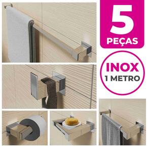 Kit Acessórios Para Banheiro 5 Peças Aço Inox Linha Quadrada Q5G
