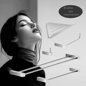 O kit de acessórios para banheiro da linha Troia possui um design atemporal, são peças que se destacam com imponência e modernidade. Além de decorar, organiza com funcionalidade o banheiro. Criado em metais nobres com uma qualidade que abrange áreas litorâneas e possui a de um acabamento muito resistente. Agora é só você adquirir estes lindos acessórios e fazer o seu projeto se tornar realidade com um banheiro prático para toda a sua família. Características Fabricado em metal alumínio e aço inox. Disponível no Prata Alto Brilho, Escovado e Preto Fosco. Pode ser instalado em parede, azulejo e porcelanato. Benefícios Fixação prática e segura com parafusos e buchas inclusos. O produto não possui nenhum detalhe em plástico ABS . Fácil higienização, ideal para locais que exigem limpeza constante. Aproveitamento inteligente do espaço, ideal para ambientes compactos. Resistente à corrosão e luz solar. Itens ENVIADOS: 1 cabide, 1 porta papel higiênico, 1 toalheiro rosto 30cm, 1 toalheiro duplo 60cm, 1 prateleira suporte canto 30cm, kit de parafusos e manual instrução instalação. Instalação INTELIGENTE Ao 1º furo, use uma broca medida menor, após use a medida correta e finalize, vai ajudar na precisão da fixação da bucha principalmente em azulejos e porcelanato.