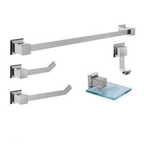 Medida de Cada Item: Saboneteira: 10 x 12,6 x 6 cm Porta toalha de banho: 51 x 6,3 x 4,9 cm Porta toalha de rosto: 26 x 6,3 x 4,9 cm Porta papel higiênico: 18 x 6,3 x 4,9 cm Cabide: 1,9 x 7,8 x 8,2 cm