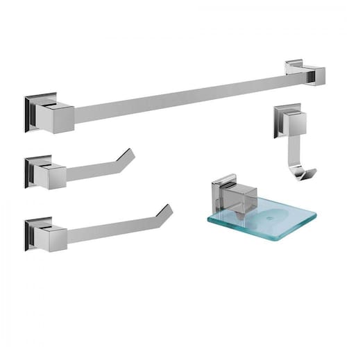 O kit de acessórios para banheiro da linha Premium representa o máximo em sofisticação ao seu banheiro. Tem formas retas e planas, cuja referência vem de linhas de design consagrado. O Acabamento Cromado dá um toque contemporâneo e refinado ao seu banheiro. Para você que é exigente e elegante essa é a escolha perfeita! É produzido em metais de altíssima qualidade o que garante um produto de maior durabilidade.