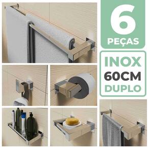 Contendo: 1 Cabide Linha Quadrada 1 Papeleira Linha Quadrada 1 Saboneteira Linha Quadrada 1 Porta Shampoo 30cm Linha Quadrada 1 Toalheiro De Rosto 30cm Linha Quadrada 1 Toalheiro Duplo 60cm Linha Quadrada