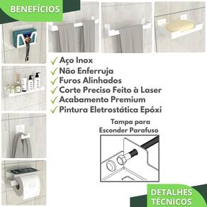 Com um design minimalista, o preferido pelos arquitetos nos últimos tempos, o Kit Acessórios Para Banheiro é fabricado utilizando aço inox com acabamento em Pintura Eletrostática Epóxi proporcionando maior durabilidade, resistência e garantindo que não ocorrerá oxidação nem ferrugem.