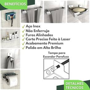 Com um design minimalista, o preferido pelos arquitetos nos últimos tempos, o Kit Acessórios Para Banheiro é fabricado utilizando aço inox com acabamento polido em alto brilho proporcionando maior durabilidade, resistência e garantindo que não ocorrerá oxidação nem ferrugem.