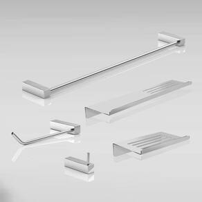 ITENS ENVIADOS: 1 cabide, 1 porta papel higiênico, 1 toalheiro banho 50cm, 1 saboneteira, 1 prateleira suporte reta 30cm, kit de parafusos e manual instrução instalação.